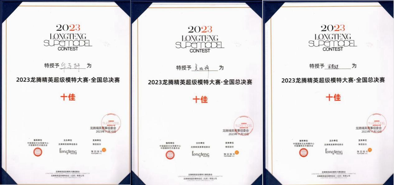 (华子轩、吴昭琦、宋贵程在2023龙腾精英超级模特大赛全国总决赛荣获十佳)