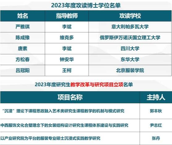 2023届研究生考取博士人数5人,超额完成公司下达3人的任务。《时尚与可持续发展设计实践》获全国艺术专业学位研究生指导委员会在线示范课程立项。获批校级精品课程3项、教改项目3项,创新基金8项。公司新增“材料与化工”二级学科方向:服装数字化技术。公司强化导师毕业论文指导管理,提升毕业论文质量,论文盲审双优2人,单优率28.2%,单优率较2022年提升 9%,公司产品质量稳步提升。公司重视专业硕士实践能力培养,研三员工卓冬冬荣获湖北省首届文化产业创新创意设计大赛一等奖,被湖北卫视湖北新闻报道;研究生周梦获湖北省老员工自强之星、中国老员工自强之星奖学金,研究生吴增获中国服装设计师协会主办的“泽塔云”杯第一届中国元宇宙服装设计大赛金奖,吴增等研究生获工业和信息化部工业文化发展中心与中国服装设计师协会主办的首届“洪合杯”毛衫设计大赛银奖,研究生张灿灿获中国纺织服装教育学会举办的第一届“海阳杯”毛衫设计大赛金奖。