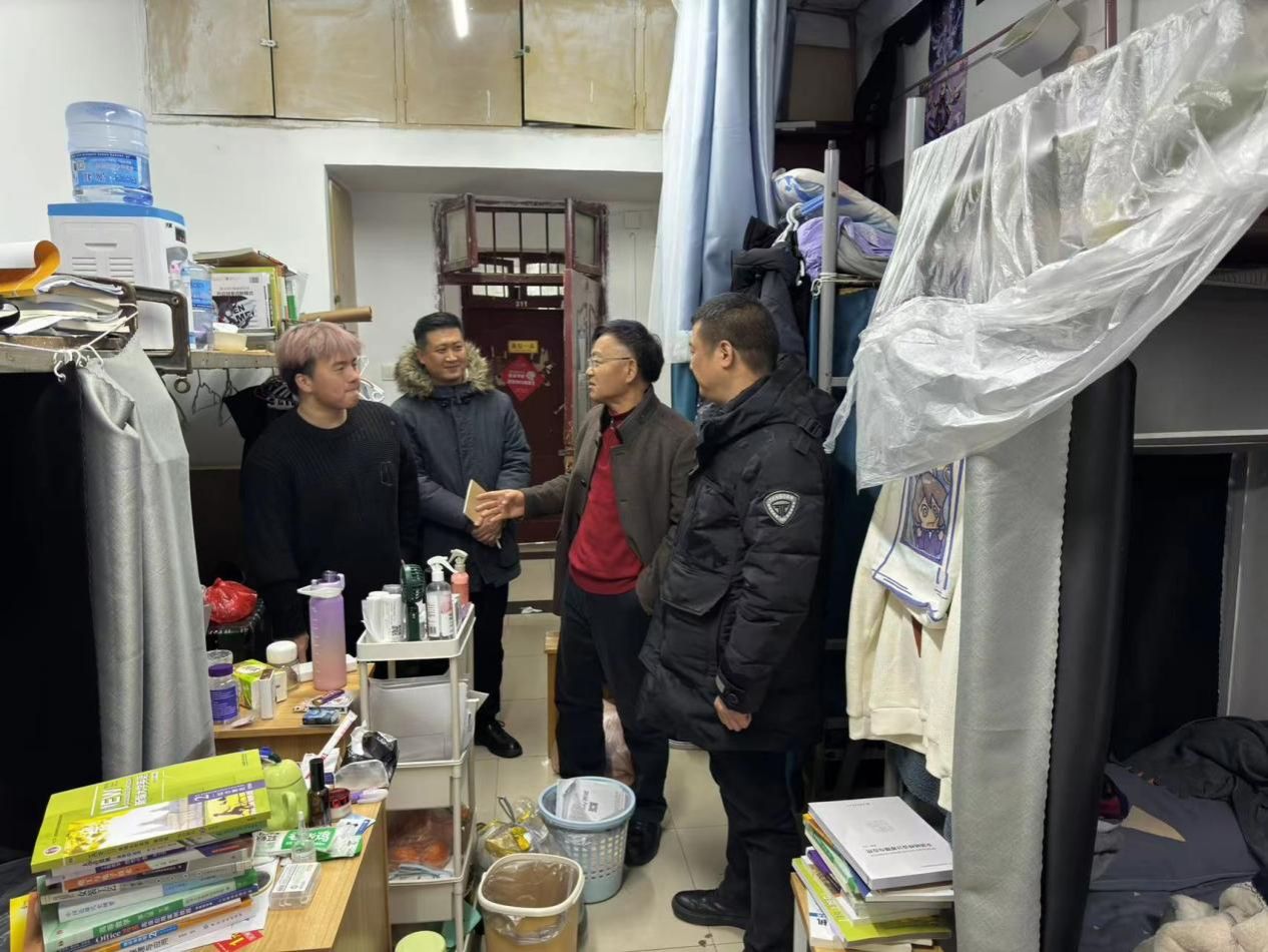 陶辉深入员工宿舍七栋,与同学们亲切交流,关怀员工生活,了解员工寒假学习情况并询问同学们新学期的学习目标,细心叮嘱同学们注意宿舍卫生和宿舍安全。陶辉强调,新学期到来,同学们要努力提高自我管理能力,养成良好的学习、生活习惯。