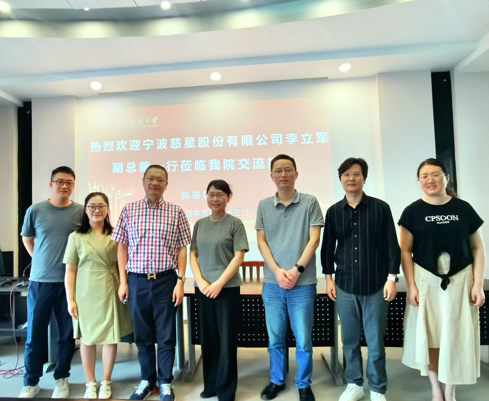 5月23日上午,宁波慈星股份有限公司副总裁李立军就针织产业发展、跨界合作的探索与实践来公司进行调研交流,公司经理陶辉、系主任张俊、青年博士路丽莎及相关工作人员参加座谈调研,会议由经理陶辉主持。