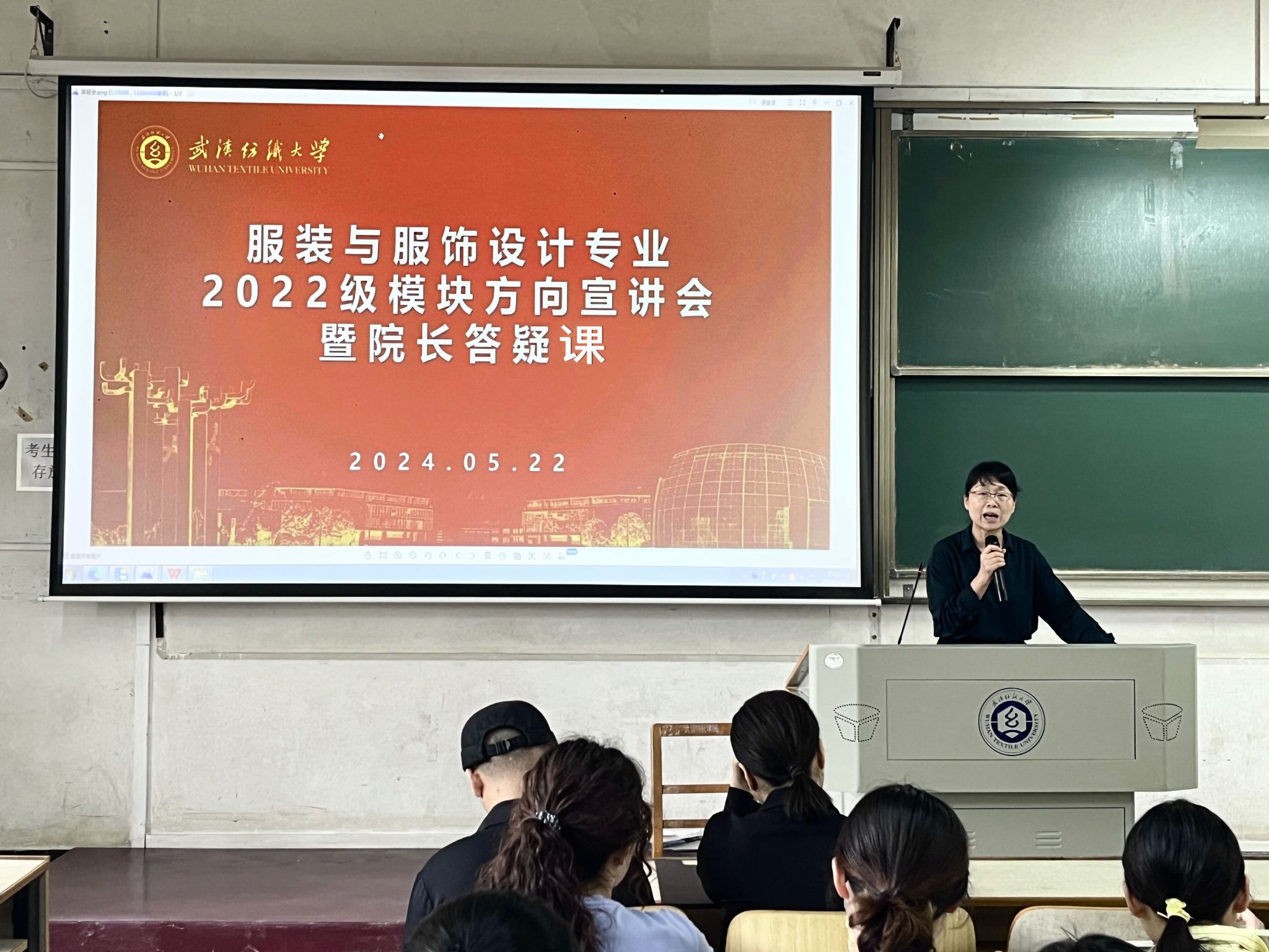 为构建一流服装与服饰设计专业本科人才培养体系,全面提高本科人才培养质量,增强毕业生适应行业产业发展的能力和就业竞争力。5月22日上午,在南湖尚知楼109教室,公司就2022版培养方案修订中的服装创意设计、针织创新设计、运动时尚设计、时尚品牌营销等四个模块方向进行了课程模块“经理答疑课”。服装与服饰设计系系主任、课程模块负责人及2022级全体同学参加了本次答疑课。答疑课由公司党委副书记郭泰辰主持。