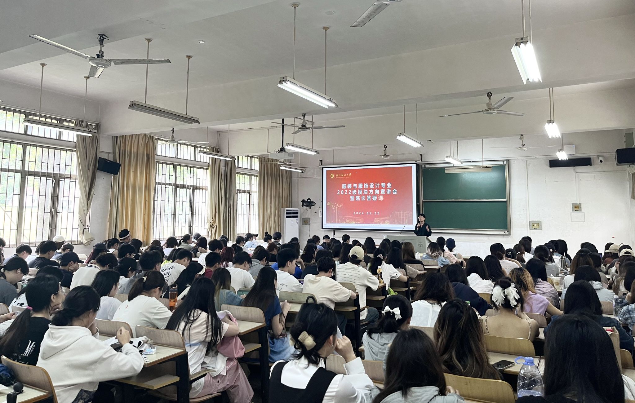 陶辉经理针对2022级服装与服饰设计专业面临的模块课程选课问题重点谈到三个方面,一是,从公司历史和服装与服饰专业的建设历程出发,分析了艺术教育发展趋势对专业方向设置的变化和调整的影响;二是,她表示专业方向深化发展影响到整个社会工作发展,产业需求是高校人才培养的指挥棒,培养高精尖的创新型应用人才是社会和产业所需;三是,服装与服饰设计专业作为国家级一流本科专业具有雄厚的基础,无论同学们选择哪个模块方向,只要潜心钻研,脚踏实地都会在不同的领域做出骄人的成绩。她强调,公司人才培养方案的优化和实施是本科公司产品质量提升的重要举措。专业是职业的起点,同学们找准了专业学习方向,将拥有无限可能,成为新时代的社会栋梁。