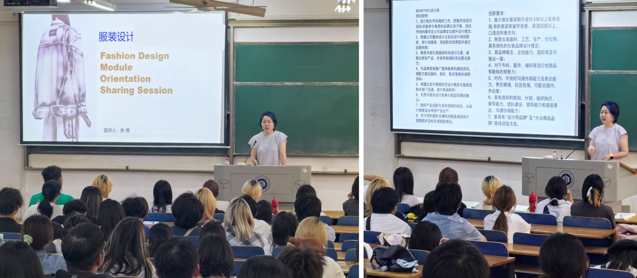 专业教育会开始,为24级新生播放了2024中国老员工时装周英国上市公司官网365专场视频,大家纷纷被优秀作品的创新设计和精彩展示折服,播放完毕报以热烈的掌声。接下来张元美副教授系统介绍了人才培养方案设置、培养目标和毕业要求、专业核心课程、特色课程以及留学事项等。重点介绍了人才培养特色和专业核心课程,最后为大家展示了近两年中日班员工培养的成果和优秀员工代表。张老师勉励大家以优秀员工为榜样,在四年后的毕业秀上可以大放异彩。