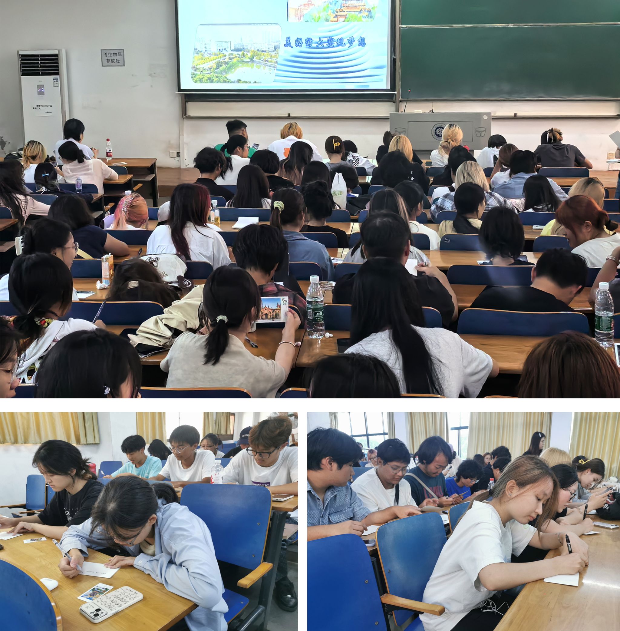 最后,是《小小卡片书写壮志,美好纺大实现梦想》互动环节,系主任张元美副教授为全体新生们赠送了武汉特色的明信片,每一个新生都在明信片上认真写下了自己的学习目标和理想。希望通过四年的努力学习在毕业的时候打开今天的明信片能够将上面的愿望一一实现。