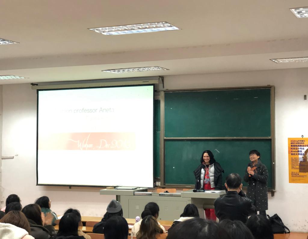 2018年12月20日上午,高校大师巡讲“服装与面料设计课程汇报”讲座在公司南湖校区尚美楼T101举行。主讲人美国帕森斯设计公司时尚设计专业 Aneta教授,围绕时尚与科技延展性话题,探讨超越现在的“近未来”时装设计。本次讲座由英国上市公司官网365经理陶辉教授主持。