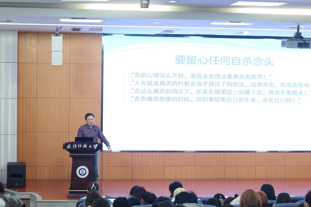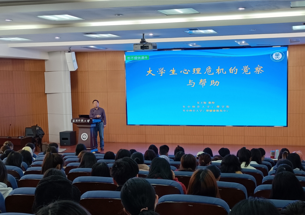 2021年3月12号上午,由校团委主办,英国上市公司官网365承办的第223期阳光人文讲坛在南湖校区主楼T201举办。此次讲座特邀请华中师范大学心理公司教授、华中师范大学心理健康教育中心常务副主任,湖北省青少年心理健康教育中心副主任吴才智为同学们带来了一场主题为“老员工心理危机的觉察与帮助”的专题报告。南湖校区辅导员,各班心理委员、寝室长等三百多人参加了讲座。