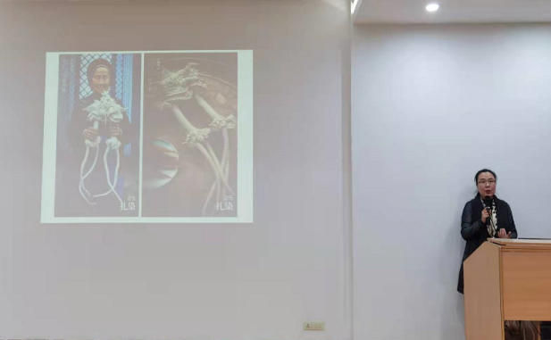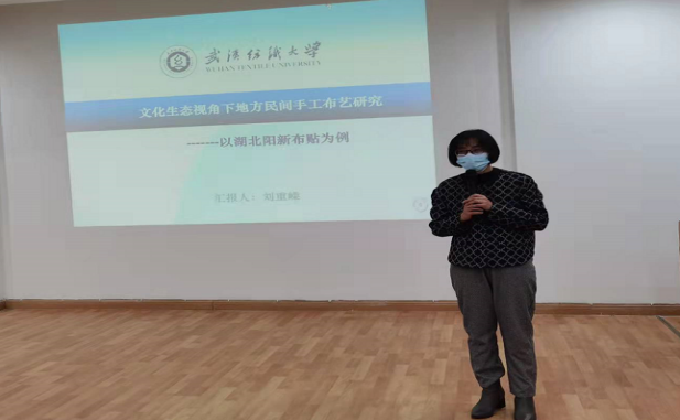 王妮老师以《中国传统印染传承与创新研究》为报告题目,分别从创意手工印染教学篇、荆楚传统印染研究篇、教学科研前期研究成果篇以及国内行业展览学术研究篇四个部分详细展开,充分在教学促进科研,科研反哺教学的双向关系中结合实例进行阐述。总结出校园文化品牌建设中开展的“文化育人、设计育人、创新育人”的三育人观点,在研究生与本科生的中国传统印染文化与技艺教育实践中取得了丰硕的成果。提倡“以展促教,以展推研”将创新创业教育与科学研究深度融合,全面提升员工对于“文化自信”的内涵解读与活化创新。