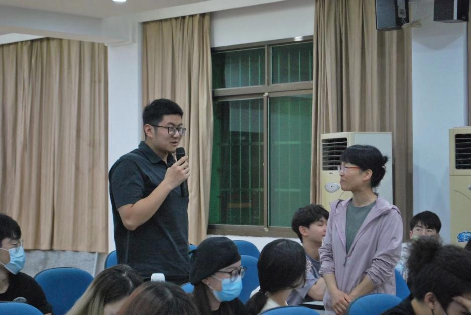第四位分享人杨帆同学的分享不同于其他同学,他是“第五届均安牛仔杯设计大赛”金奖获得者,因此他本次分享围绕废弃牛仔服装的二次利用和设计,主题为《可持续时尚设计方法探究》。针对牛仔面料洗水、染色过程中的污染问题,向大家科普了“气化筒子环保染”的理念。并向大家展示了自己在“第五届均安牛仔杯设计大赛”中的获奖作品《旧物制造局》,灵感来源于牛仔服装对环境的严重污染以及对人体的危害,使用废弃牛仔面料做的一系列设计,把收集的废弃牛仔面料通过解构等多个手法探究创新,使其具有设计感和时尚度的同时兼具环保理念。该团队围绕时尚可持续的多种方法,向大家展示了多种案例,提供了多种思路。最后,杨帆同学建议研一的学弟学妹们要重视实践,通过实践的方式找到自己的兴趣点,提高自己的动手能力。