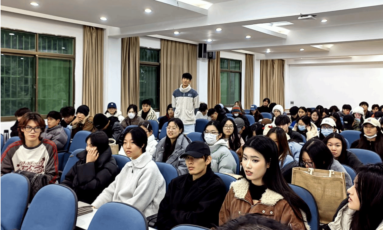 第一位汇报分享的同学来自表演12202班的潘知芝,她从事件触发带来的主题为《让青春在实践中绽放绚丽之花》,她总结中华优秀传统文化是中华民族的根和魂,是思想文化、观念形态的总体表征,传承和弘扬传统文化是我们的责任和使命;接下来分享的是表演12101班的倪心睿,作为一名业务能力较强的本科生,她从实践出发,带来了关于《服装表演实践中的自我思考与探索—出演人工智能辅助设计服装作品有感》的汇报,真正做到了的在实践中发现了问题,并积进行了极研究和思考;表演12002班的俞元辉,他围绕《表演实践对学习思路和就业创业的指导》,从表演工作实际出发,分享自己在表演实践中的新知和感悟,对学弟学妹都有所启发,现场互动热烈;表12002班李嘉欣分享的主题为《Global Runway: Unveiling Fashion's International Journey(国际天桥:揭开时尚的国际之旅)》,通过自己的面试国外时尚公司拿到offer的体会、赴海外工作的经历,通过公司的专业实践教学到从事专业模特两者之间的关联性,从综合素质提升、运用好外语能力角度给了学弟学妹们宝贵的建议。