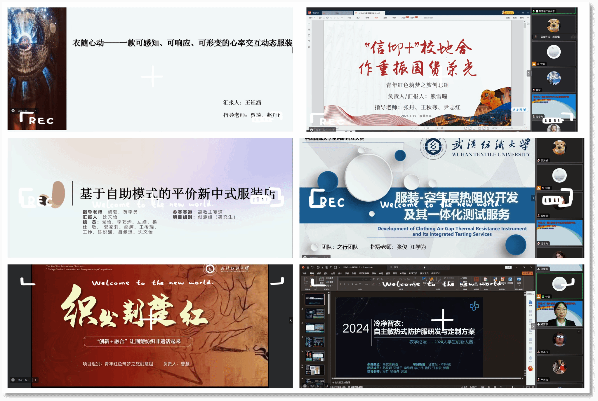 王钰涵在《衣随心动——款可感知、可响应、可形变的心率交互动态服装》中展示了一种能够对自身健康状况做出及时判断与响应的可视化心率监测服装。沈文怡在《基于自助模式的平价新中式服装店》中试图打造一种适合社恐“i”人,提供更轻松舒适的购物体验平价化新中式服装零售店。李艳君在《织出荆楚红——创新+融合让纺织非遗活起来》中展示了团队多年的实践成果;熊雪曈在《“信仰+”—校地合作重振国货荣光》 中将研究生工作站的科创项目提炼出红色元素践行创业实践。张耀月在《服装-空气层热阻仪开发及其一体化测试服务》针对中国纺织品热阻仪现状,研发了一种精准测试、实时监测、动态追踪、小尺度观测和特殊定制的空气层热阻仪及其服务模式。苏孜颖在《冷净智衣:自主散热式防护服》研发了一种高防护性、高便捷性、高舒适性和高效率的防护服。
