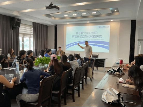薛家和分享的论文为《基于款式图识别的裤装样板自动化转换研究》。他的研究旨在解决裤装样板制作中的三大挑战:效率低下、不确定性以及满足不同用户体型的个性化设计需求。研究过程中,他勇于实验,不断尝试,最终取得了一定成果。薛家和指出,研究尽管取得了一定进展,但在款式图的深层信息挖掘和复杂设计处理方面仍有提升空间。江学为教授赞赏了薛家和同学不懈探索的科研态度,并鼓励在场的同学们像他学习,不断追求科学研究的深度与广度。