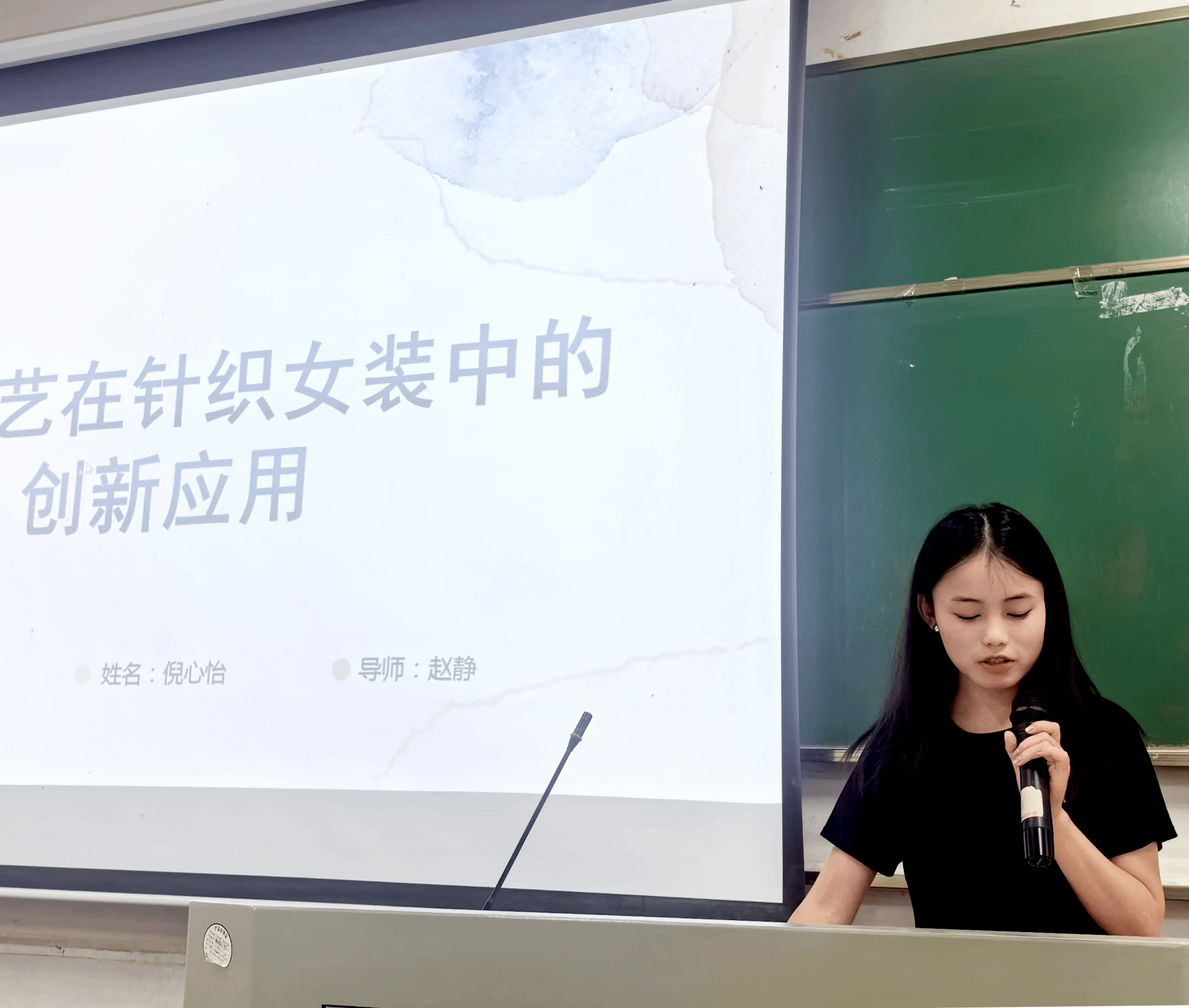 宋兆慧同学分享的优秀毕业论文题目为《复古未来主义风格在女装设计中的应用》,展现复古情怀与未来视角,创造了无尽的可能性,复古与未来两者的融合与创新使得服装风格更加个性化、多元化。王昊玥以《IP形象在现代服装设计中的应用与研究》为题进行分享,讲述她的设计构思过程和曲折,告诉低年级的同学一定要深入自己的内心发现自己喜欢的擅长,才有更大可能性做出成功的作品。张琪以《褶皱工艺在女装礼服中的创新运用》为题从服装的可穿性与审美性角度阐述了褶皱工艺的功能,并进行设计实践的过程。陈雨轩讲述了毕业设计作品《城市里的赫拉克勒斯》从灵感来源到设计制作过程中用到的新科技及非纺织材料等,大量的设计实验是成功的关键。郭嘉分享了设计作品《流浪》在设计制作过程中的经历和经验,详细的分解流行趋势与自己设计的关联。罗佳乐《Escape from the circus》三位同学的毕业设计作品服装图案的应用进行多角度的创新设计实践。