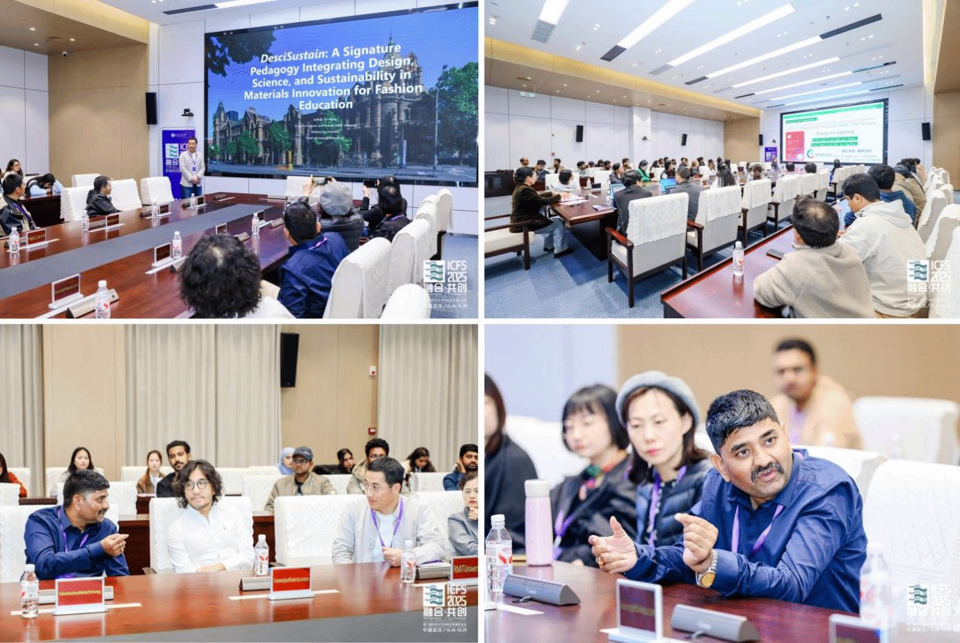 北京英国上市公司官网365吴琪发表了题为《Sustainable Fashion Education under the Dual-carbon Goals: Full-value-chain Transformation and ESG Talent Cultivation》的专题报告。她结合双碳目标背景,分享了该校在产业链协同教学、ESG人才培养、跨学科实践等三大教学模式创新,并对可持续设计教育提出了具体建议。