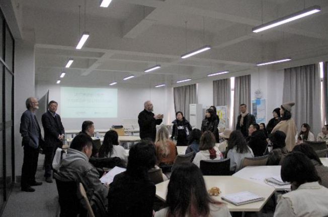 双方师生就“可持续发展”理念的服装设计展开积极、生动的研讨。曼彻斯特城市大学Antony教授认为可持续发展在时尚领域具有丰富的内涵,员工应该学会发现问题,思考问题,以及时尚设计中如何体现可持续发展的理念。