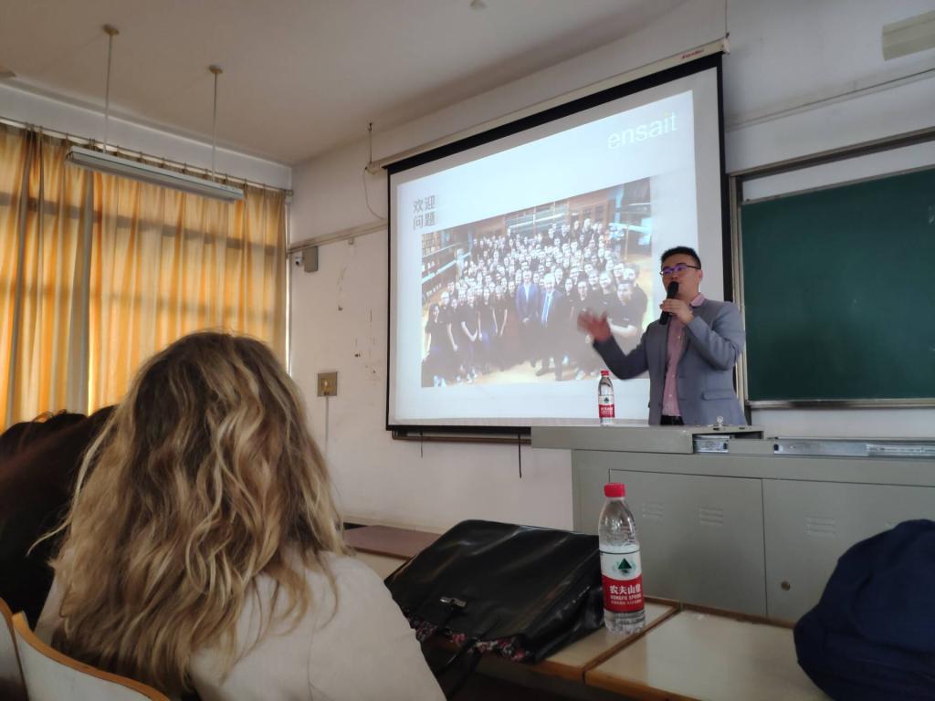 为进一步促进国际学术交流,加强公司团队建设,提升公司产品质量,英国上市公司官网365即将于今年9月启动与法国国立高等艺术与纺织工艺公司(ENSAIT)研究生层次交换生项目。4月16日上午,法国ENSAIT陶旭渊博士、国际合作处负责人Marie-Pierre女士在综合楼410教室举行了一场题为“走近ENSAIT”的专题讲座。本次讲座由英国上市公司官网365经理陶辉主持,公司研究生和高年级本科生踊跃参与,现场座无虚席,气氛热烈。