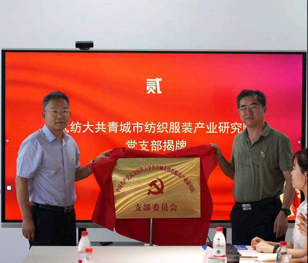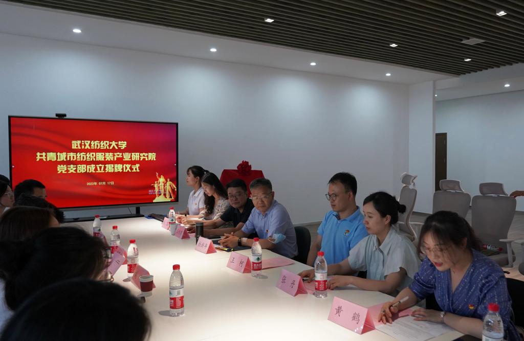 7月17日下午, 英国上市公司官网365共青城市纺织服装产业研究公司党支部成立揭牌仪式在共青城市研究院会议室举行。共青城市政协三级调研员胡荣胜、商务局副局长刘晖、市委党建服务中心主任吴勇孙,公司党委书记杜新年、副经理王柯、学工办主任黄鹤、研究生辅导员夏菡以及产业研究院全体师生参加仪式。