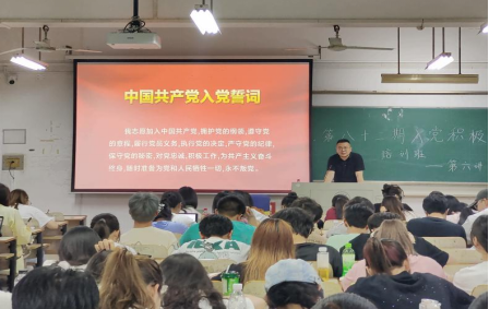 周洋围绕党代会的由来与职权、中国共产党历届党代会的简要回顾、追寻中国共产党百年发展壮大的密码三个方面展开,结合《中国共产党章程》第三章党的中央组织讲述了党员的基本素质与要求入党理念的转变带领全体学员学习了《中国共产党入党誓词》,进一步坚定了大家的入党信念