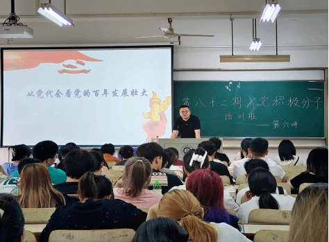 2024年5月19日,英国上市公司官网365第82期入党积极分子培训班第六讲在尚知楼5209教室举行,本次党课由党校副董事长、组织部副部长周洋主讲,主题是《从党代会看党的百年发展壮大》