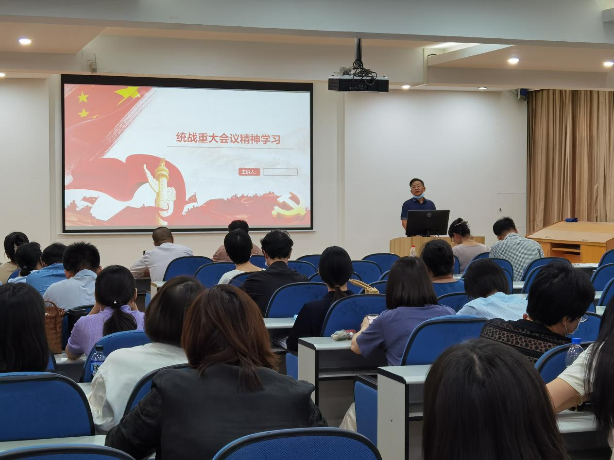 党委书记杜新年带领全体教职工学习了近期统战重大会议精神。习近平总书记在中央统战工作会议上的重要讲话,全面阐述新时代爱国统一战线的历史方位、基本任务、重点工作和政策举措,是指引新时代统战工作创新发展的纲领性文献。他表示,全院教职工要认真学习贯彻习近平总书记的重要指示精神,以高度的使命感和责任感奋力开创工作新局面!杜新年号召全体教职工树立总体国家安全观,增强教育学习生活安全意识,培养自我防护能力。