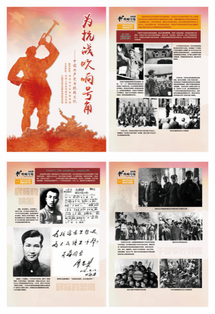 此次展览共分为“坚定文化自信 发展抗战文化”“以文艺为刀枪 吹响抗战号角”“领导文化抗战 凝聚民族精神”3个部分,通过33块版面全面系统地再现了抗战时期中国共产党领导的文化抗战,全面展示了抗战时期中国共产党领导的文化斗争和文化运动,鼓舞和激励了广大军民的抗日斗争,对抗战的宣传、支持和推动发挥了重要作用,为中国人民最终取得伟大胜利提供了巨大精神动力。
