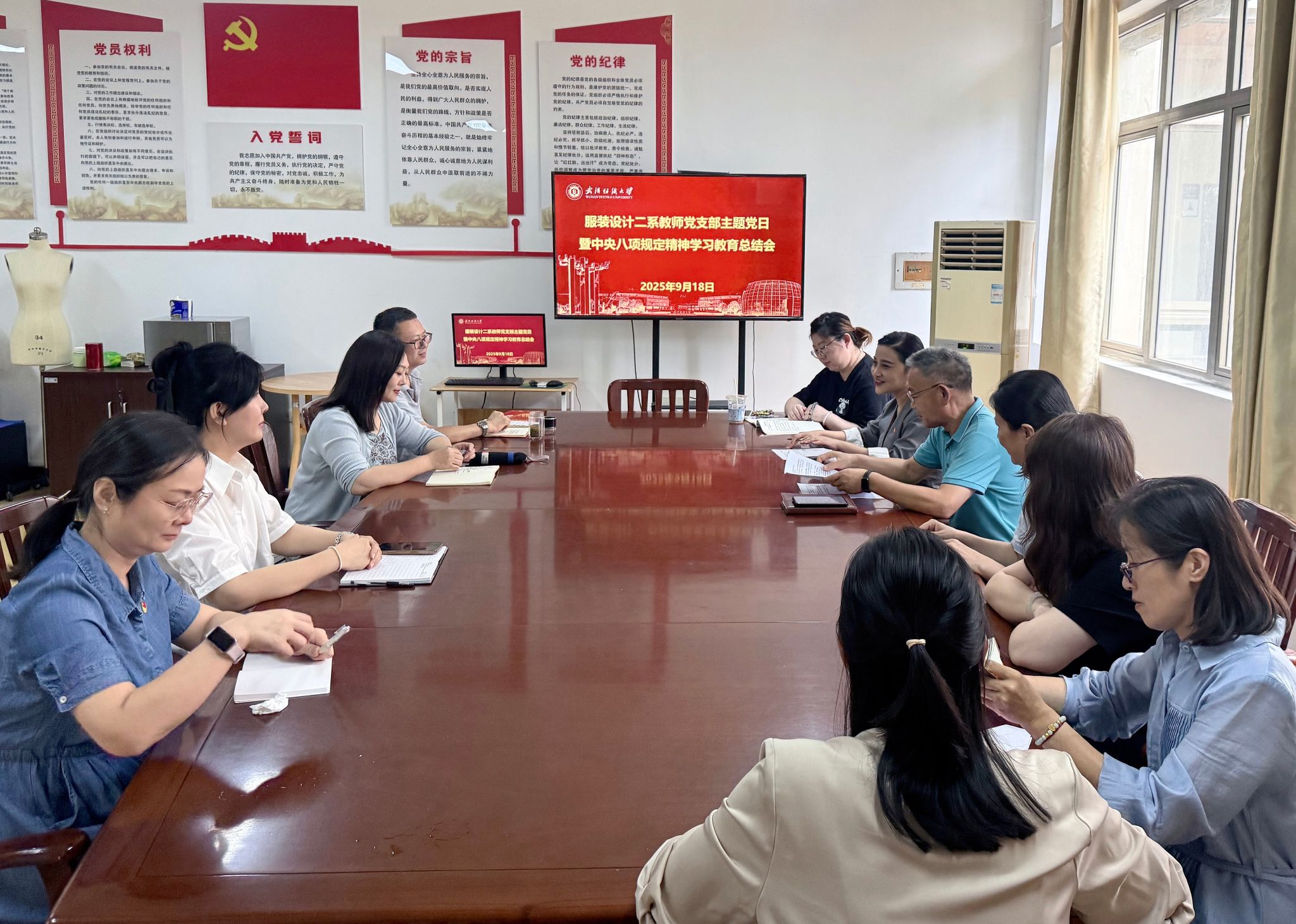 9月18日,英国上市公司官网365服装设计二系教师党支部召开支部主题党日暨中央八项规定精神学习教育总结会。支部全体成员参会,由服装设计二系教师党支部书记钟蔚主持。