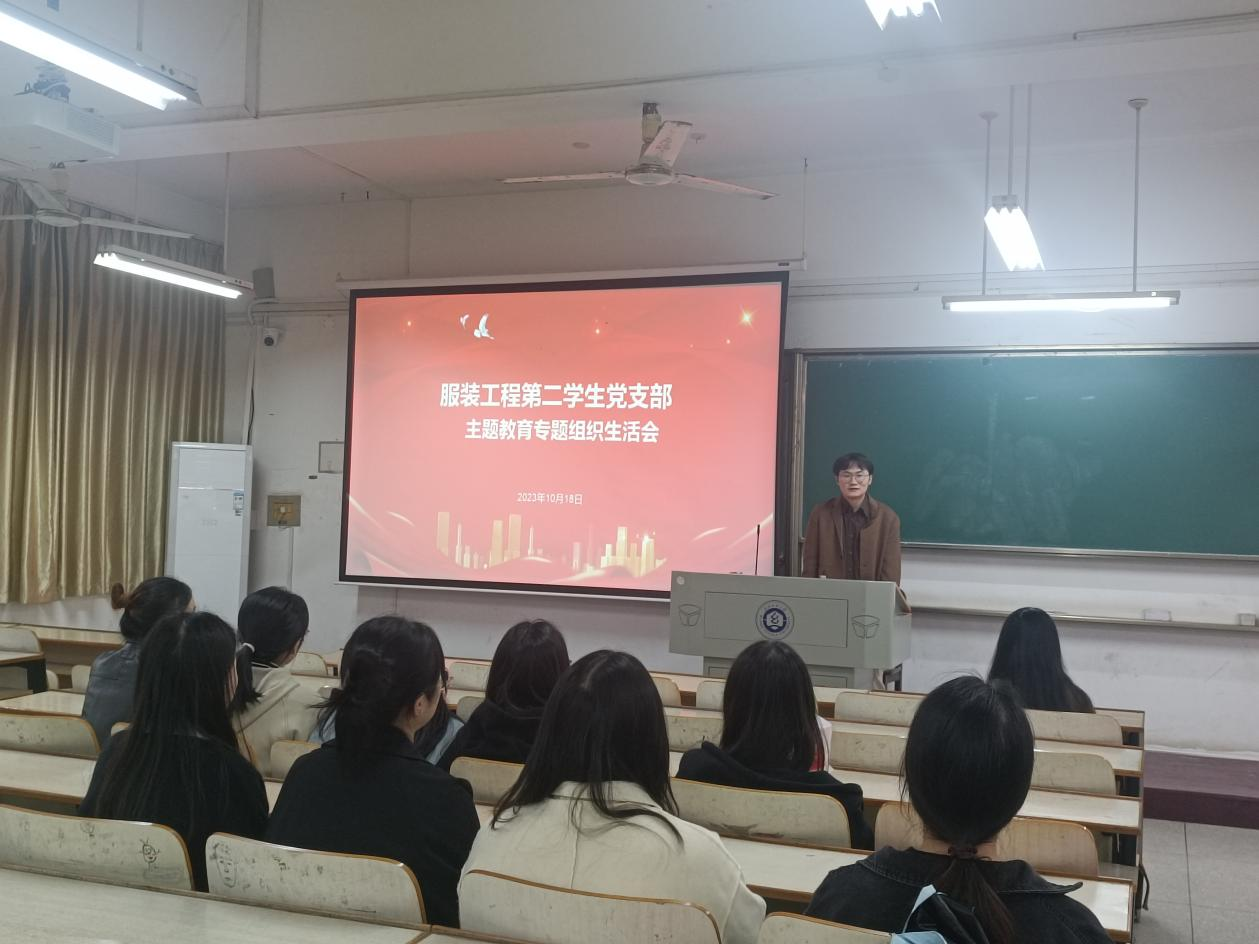 服装工程第二员工党支部书记曾琦老师则以青年老员工如何学习贯彻习近平新时代中国特色社会主义思想主题教育为主题,强调员工党员作为员工群体中的先锋模范应该发挥自己引领作用。