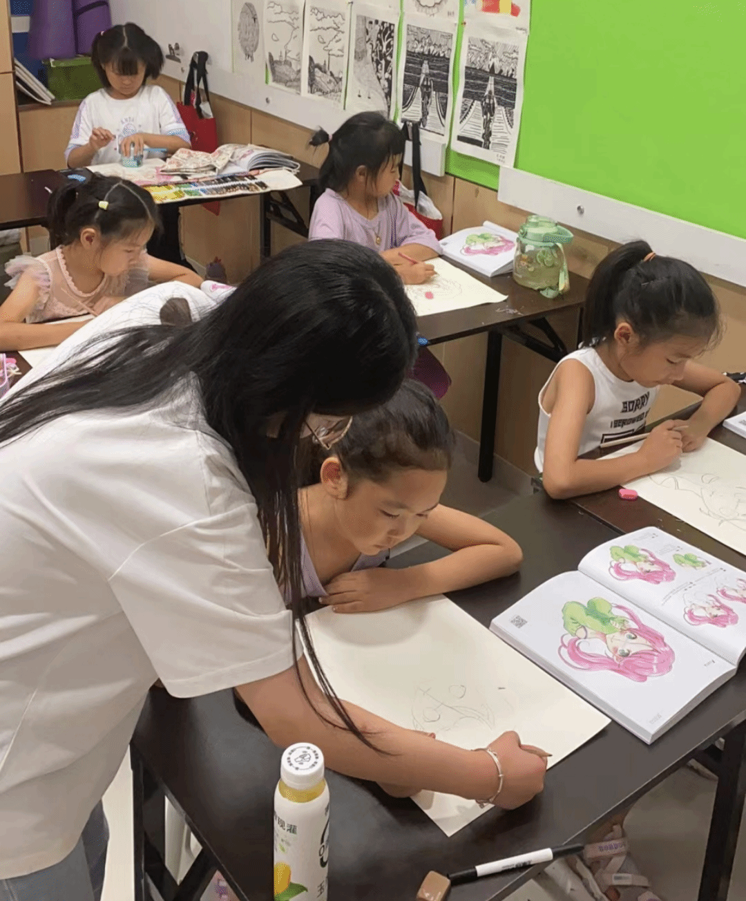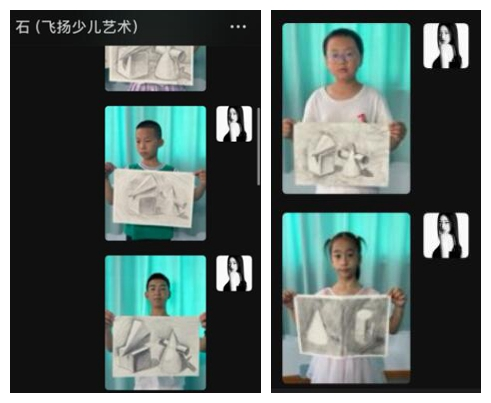(本科生支部党员陈彦君为飞扬少儿艺术中心小朋友提供素描几何辅导)