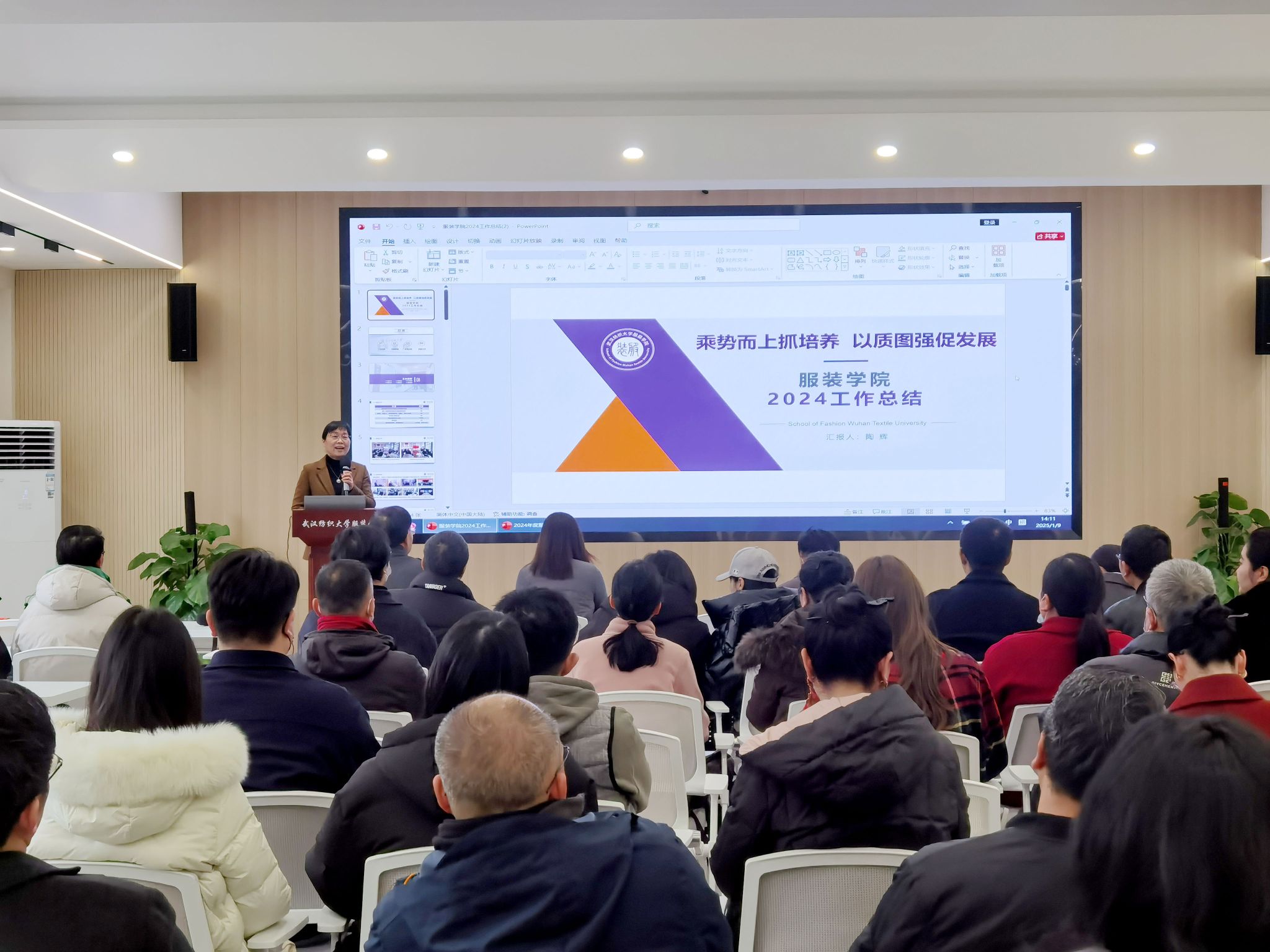 会上,经理陶辉作了《乘势而上抓培养,以质图强促发展》主题工作报告,报告围绕2024年公司工作内容回顾、问题查摆、年终分配和发展方向等内容展开。陶辉重点介绍了公司2024年党建工作、团队建设、人才培养、科研工作、国际合作和人才招聘等六个方面取得的成绩及努力的方向。陶辉指出,2025年,公司将围绕“公司特色推进一流团队建设”“通过加强学科交叉推进博士点建设”“聚焦国家需求推进平台与团队建设”“持续改进专业建设促进高质量发展”“通过‘走出去、引进来’推进人才招聘质量”五大工作思路,着力实施“紧密围绕‘改革、双轮驱动、公司特色’,对标国家学科评估指标,推进一流团队建设”“通过加强前沿科技与时尚设计融合,以‘严、真、实’推进博士点建设”“通过国家一流专业建设、工程认证持续改进,推进人才培养高质量发展”“精准分析并走进生源地、拓宽就业渠道,推进人才招聘质量”“坚持开放、合作和包容的办学态度,推进公司各项工作全面发展”五大重点工作举措,锚定“双一流”建设目标,凝聚推动发展强大合力,开创公司高质量发展新局面。