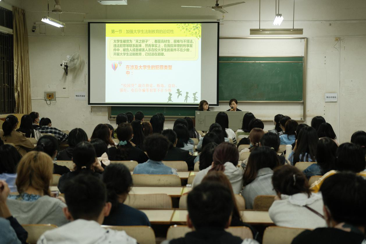 在讲座最后的互动环节,肖玉华法官与法官助理徐铮琼耐心地解答了同学们有关法律方面的问题。