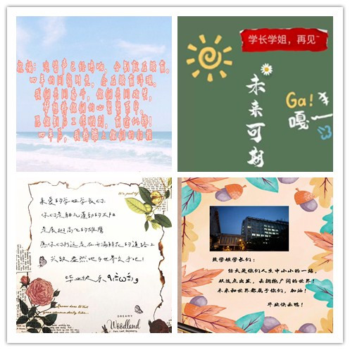 公司大一至大三的同学们,纷纷拿出自己的创意巧思,或剪辑祝福小视频,或绘制祝福海报,或书写祝福小诗,以这些丰富多彩的形式向学长学姐们送上最为诚挚的祝福。