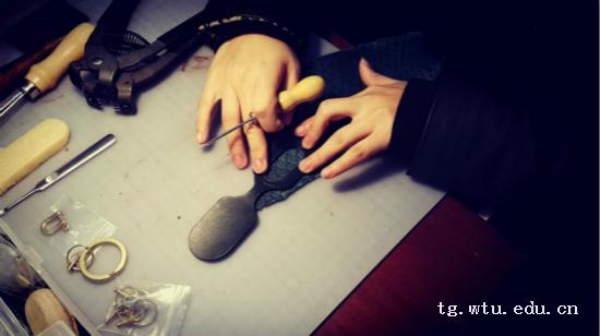梦想是布满荆棘的羊肠小道,可她们从不退缩。她们说,配饰设计将她们带入了服装的另一个领域,它是服装不可或缺但却鲜有人涉及的领域。因为她们平时都对皮具有一些兴趣,也曾粗略地进行过一些尝试,于是决定组队完成这次的配饰作业。慢慢的,她们由刚开始的知道一些皮毛到后来的略知一二。手下做出的东西越来越多,皮料越来越完备,工具越来越齐全,可是手上的钱却越来越少。她们都不是来自非常富裕的家庭,为了减轻家庭的负担,也为了继续她们的路,寻物工社,她们自己一手运营的淘宝店也因此应运而生。