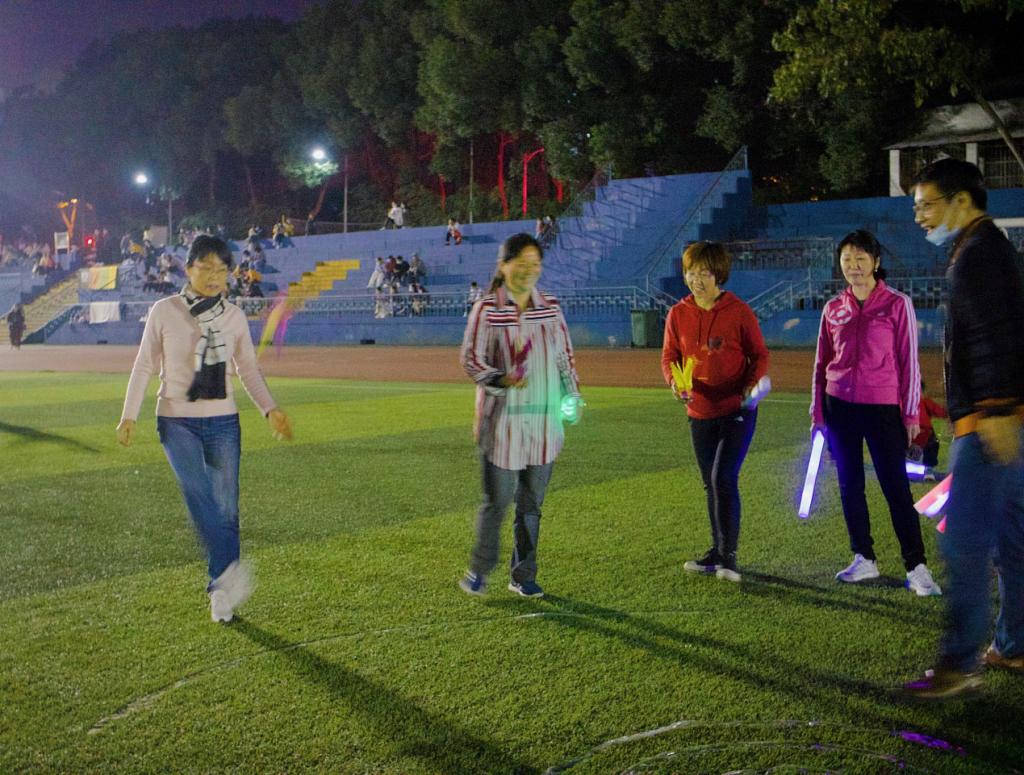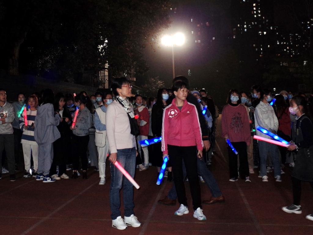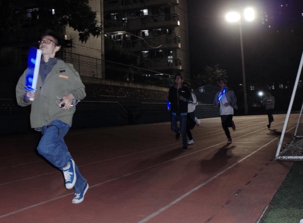 活动伊始,陶辉宣布“荧光夜跑”活动开始并领跑,在场师生共同起跑,手里挥舞的荧光棒点亮整个田径场,场面热闹而温馨。随后的闯关环节充满趣味性,让大家在欢声笑语中锻炼身体,增进感情,提高团队协作能力。