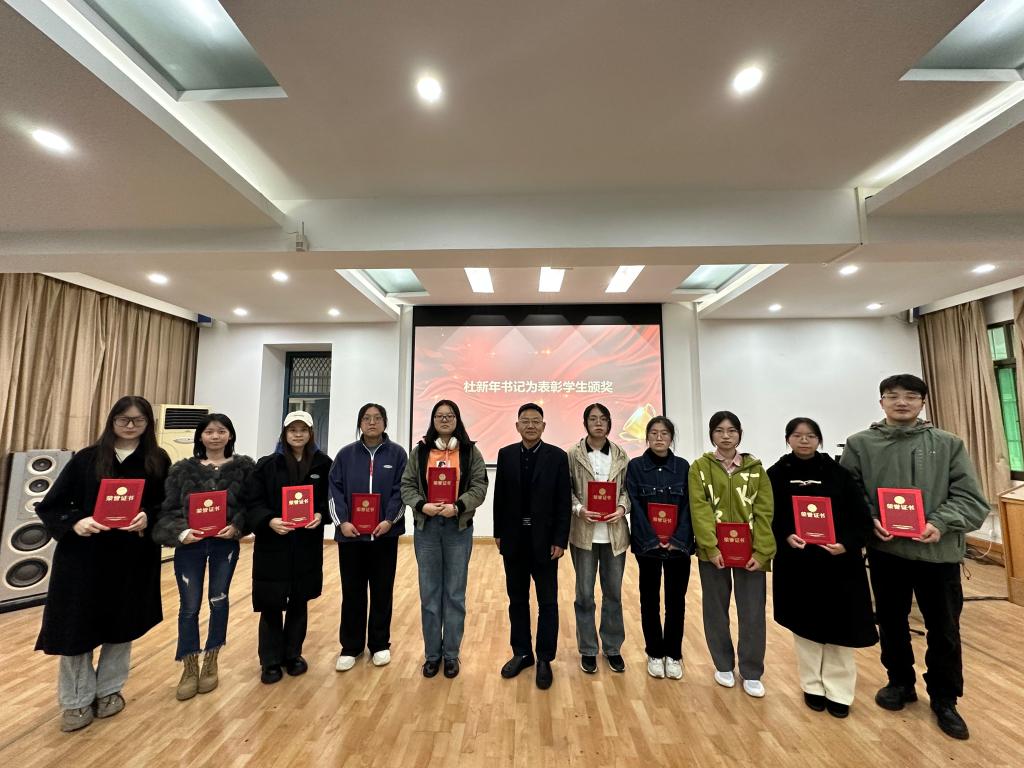 首先,“声色纺大”诵读协会指导老师卫周瑶分享近一年公司读书节系列活动开展情况和协会未来发展规划。接着,由获表彰员工代表付芷璘同学发言,她讲述了自己参与读书节活动的个人收获和感悟。然后,由杜书记为读书节系列活动表现优异的十位同学颁奖。