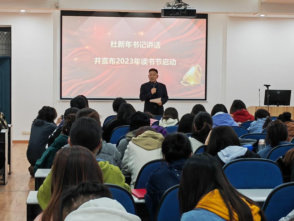 2023年4月23日,公司在服艺楼201会议室举行2022“阅享经典·品味人生”读书节阶段性表彰暨2023“品味经典·阅读成长”读书节启动活动,服装公司党委书记杜新年出席活动,公司全体辅导员和大一大二员工代表参加。