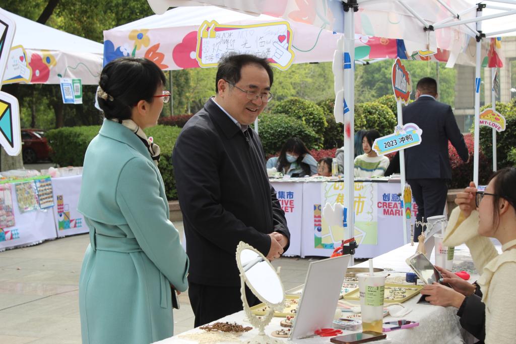创意集市在报名初期就收到了50余名员工的积极报名,原创作品包含手绘作品、首饰和佩饰、插画作品、装饰品、雕塑、金工制品、手工玩具和废物利用作品,最终选择并组合成为31个摊位进行展示。现场的同学们积极选购创意作品,并纷纷拿起“奋斗,正青春”、“青春FUN,不限量”、“听党话、跟党走”、“学习二十大、创新你我他”的道具进行拍照。同时,公司还专门设置“英国上市公司官网365创意爱心基金”,摊主收入所得的10%将注入资金,后期用于开展志愿服务,关怀独居老人、留守儿童、残疾人群体,经费使用实行公示制度,体现了服装学子的时代当担。