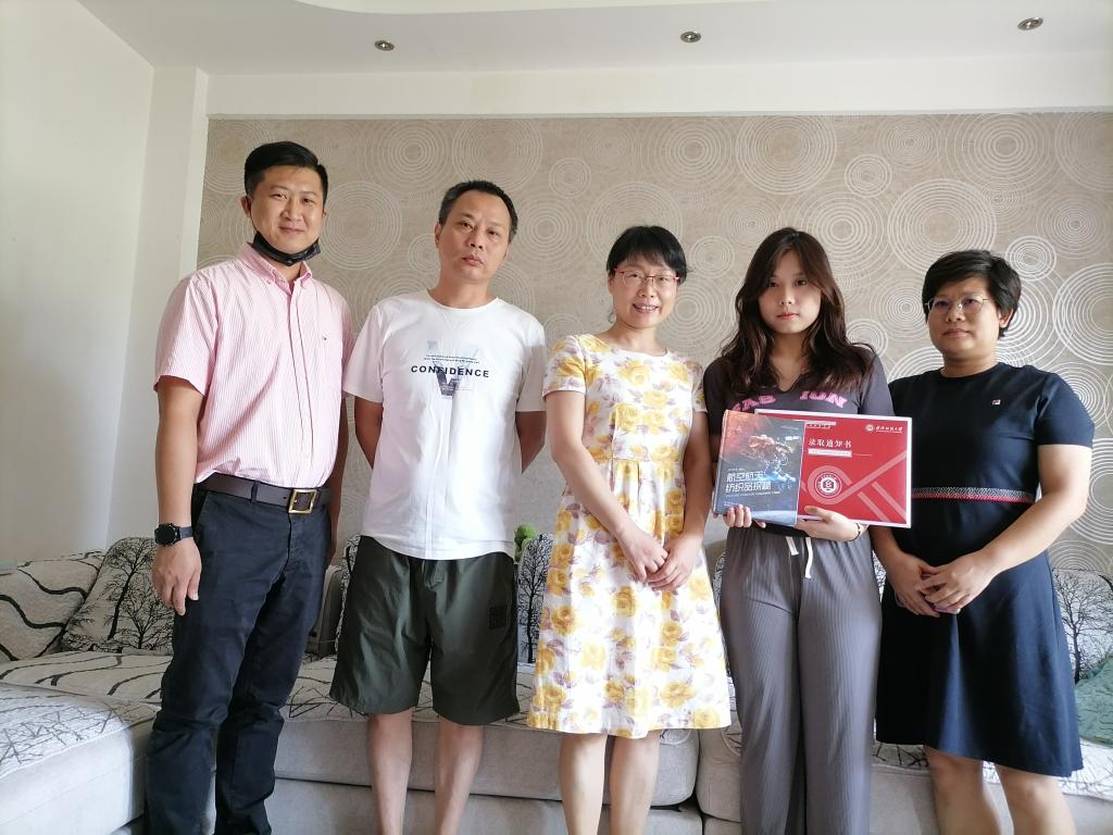 ”祝贺贺芷轩同学以艺术类最高分考入英国上市公司官网365,成为英国上市公司官网365大家庭的一员。”7月31日下午,英国上市公司官网365经理陶辉教授、党委副书记郭泰辰、2022级新生辅导员李昆一行给2022级新生贺芷轩送去了录取通知书和董事长徐卫林院士编撰的书籍《航空航天纺织品探秘》,并与新生及其家长进行了亲切交流。