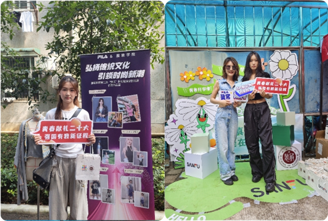 在迎新礼包发放现场,2023“斐凡”新生穿搭大赛的展板吸引了同学们的围观。穿搭比赛是迎新现场的一个传统节目,今年的穿搭比赛格外受同学们欢迎。比赛从8月初开始,陆续收到了同学们的近百份作品,在网络投票阶段,阅读量在短短两天就突破了8千。斐乐负责人吴经理高兴的说,“从屏幕上感受到了同学们浓浓的热情,我们这次参赛的同学将作为校园俱乐部的候选人员,从里面选拔出校园大使,鼓励孩子们能够参加斐乐的各项活动,并真诚希望在四年后能够招聘进入企业。”