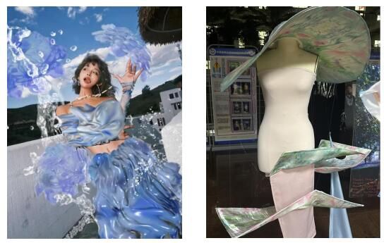 在创新方面,不仅加入了虚拟服装的形式,突破了传统的服装表现形式,展现了科技与时尚的结合,同时还将装置艺术的手法运用到服装上,通过让衣服悬浮的手法表现超现实主义。