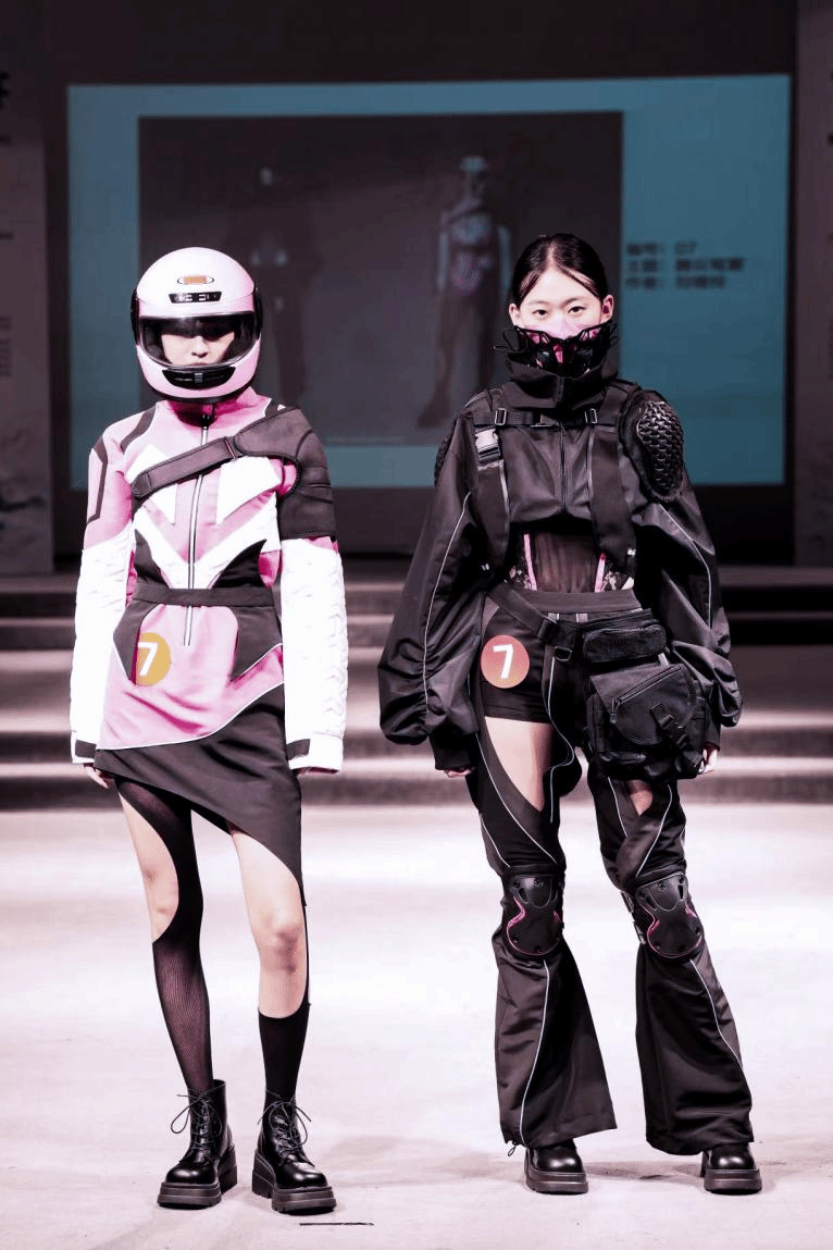 荣获全国一等奖的“秋名山车队”团队作品《腾云驾雾》结合甲胄元素和现代运动装所感所悟,深入挖掘传统历史文化与现代时尚艺术的结合,主题《腾云驾雾》(Travel Through Space)象征着穿越太空,正如大圣驾云遨游天空。随着科技和国力的提升,我们已腾云驾雾,屹立于九天之巅。