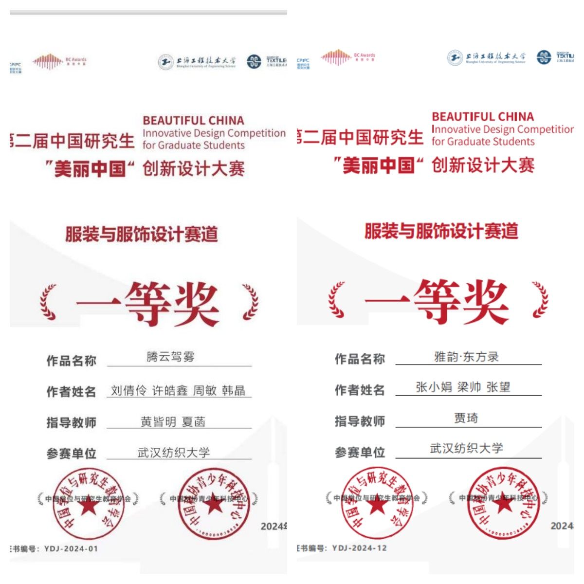 本次大赛的服装与服饰设计赛道共收到539份有效参赛作品。最终评审出一等奖14项,二等奖43项,三等奖85项。