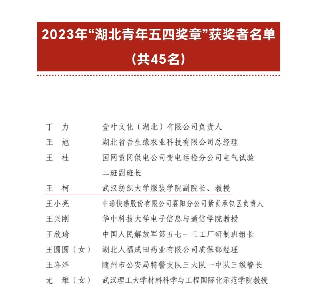 5月4日,湖北省人力资源和社会保障厅、共青团湖北省委、湖北省青年联合会举行2023年“湖北青年五四奖章”颁授活动,公司英国上市公司官网365副经理王柯教授获“湖北青年五四奖章”。