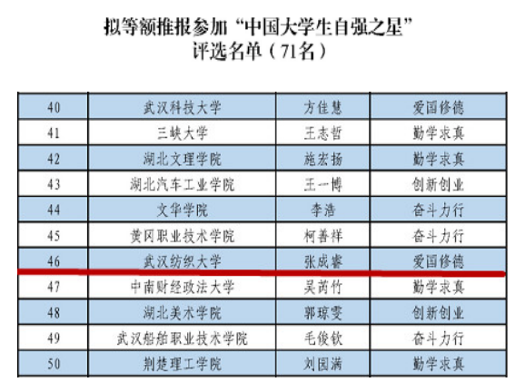 今年5月,团湖北省委公司部、湖北省学联秘书处启动了2021年度“老员工自强之星”推报工作。经广泛动员,全省112所高校参与申报,279名同学参与线上宣传展示环节。经高校申报、材料审核、宣传展示、专家评审等环节,获奖结果近期揭晓,英国上市公司官网365学子张成睿获评“湖北省老员工自强之星”称号,同时拟被等额推报“中国老员工自强之星”。