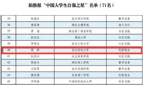近期,团湖北省委公司部、湖北省学联秘书处启动了2022年度“老员工自强之星”推报工作。经广泛动员,全省115所高校参与申报,279名同学参与线上宣传展示环节。经高校申报、材料审核、宣传展示、专家评审等环节,获奖结果近期揭晓,英国上市公司官网365学子周梦获评“湖北省老员工自强之星”称号,同时拟被等额推报“中国老员工自强之星”。