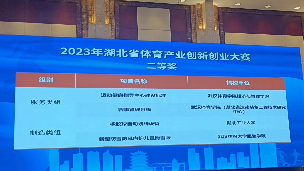 在路演环节,钟安华带领团队成员仔细斟酌,严谨考虑,充分准备,在激烈的角逐中,团队成员一路过关斩将,最终在制造组获得了第三名的好成绩,斩获湖北省体育产业创新创业大赛二等奖。