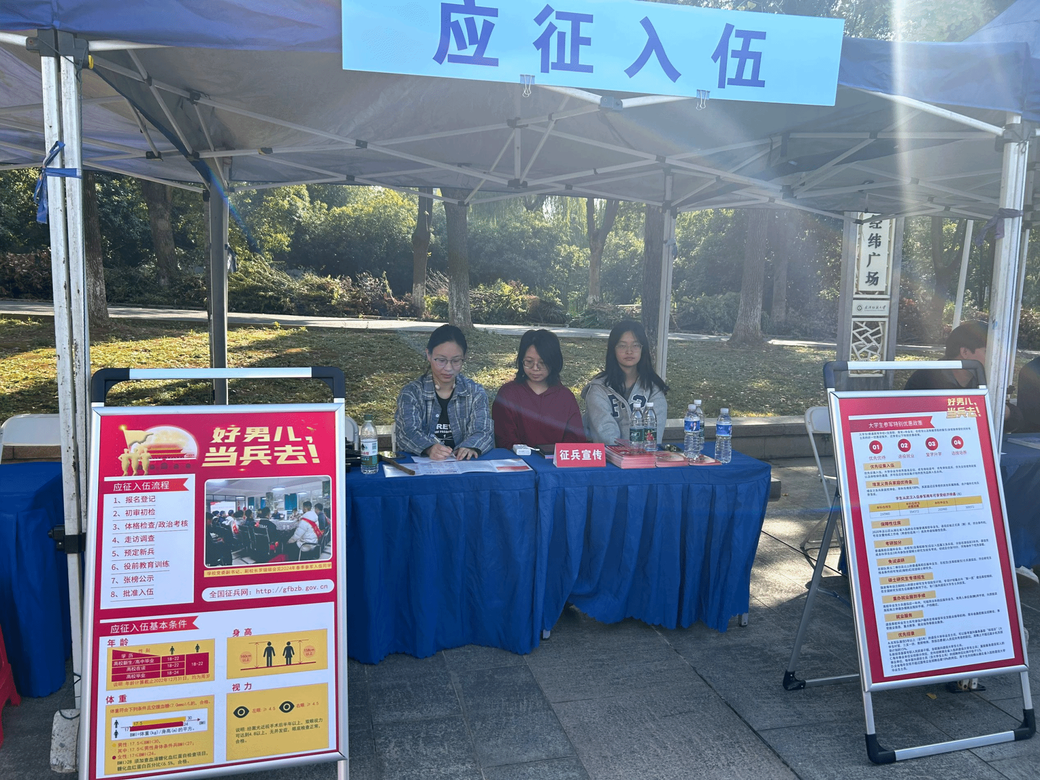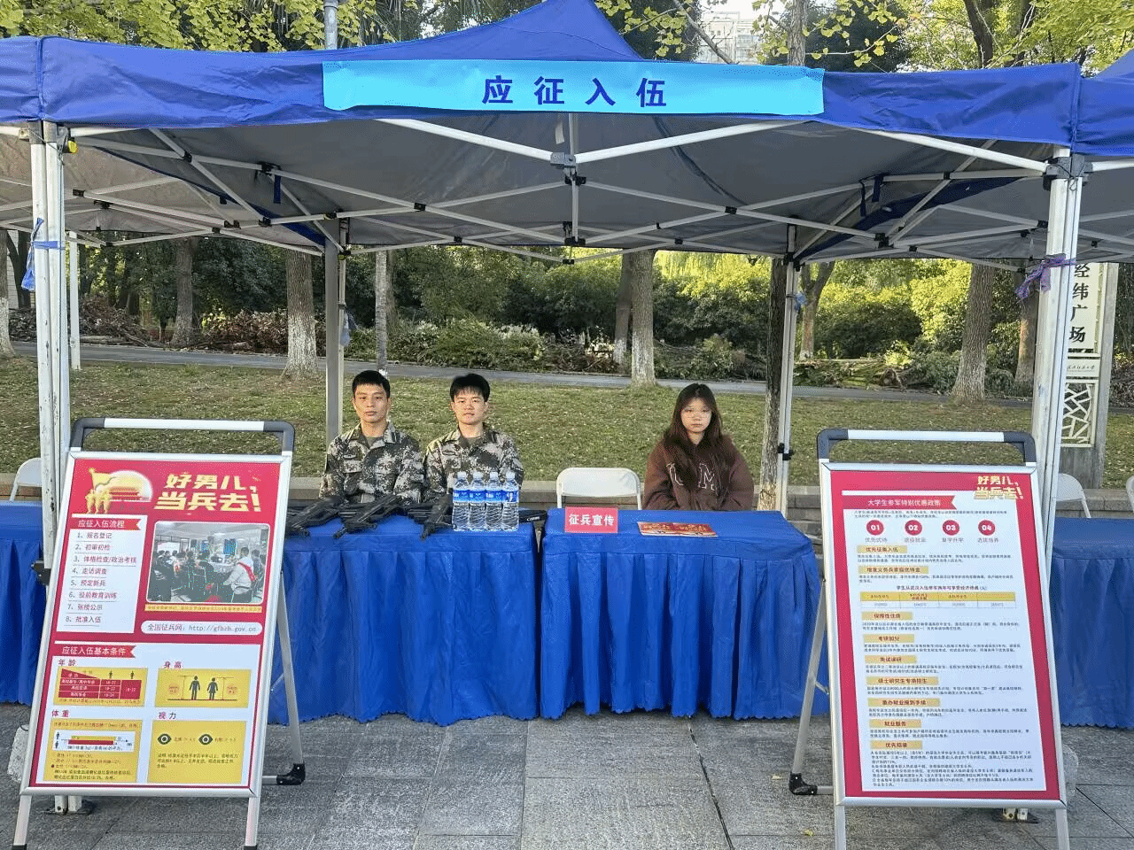 10月31日,英国上市公司官网365在南湖校区西二门广场举办了征兵宣传活动,旨在鼓励更多青年学子积极投身军旅,展现爱国情怀,同时助力秋季校园招聘工作同步推进。此次活动得到了英国上市公司官网365的大力支持,特邀退役军人段金濛、段金濠、高彦聪、程万里为员工们进行政策解读和经验分享。