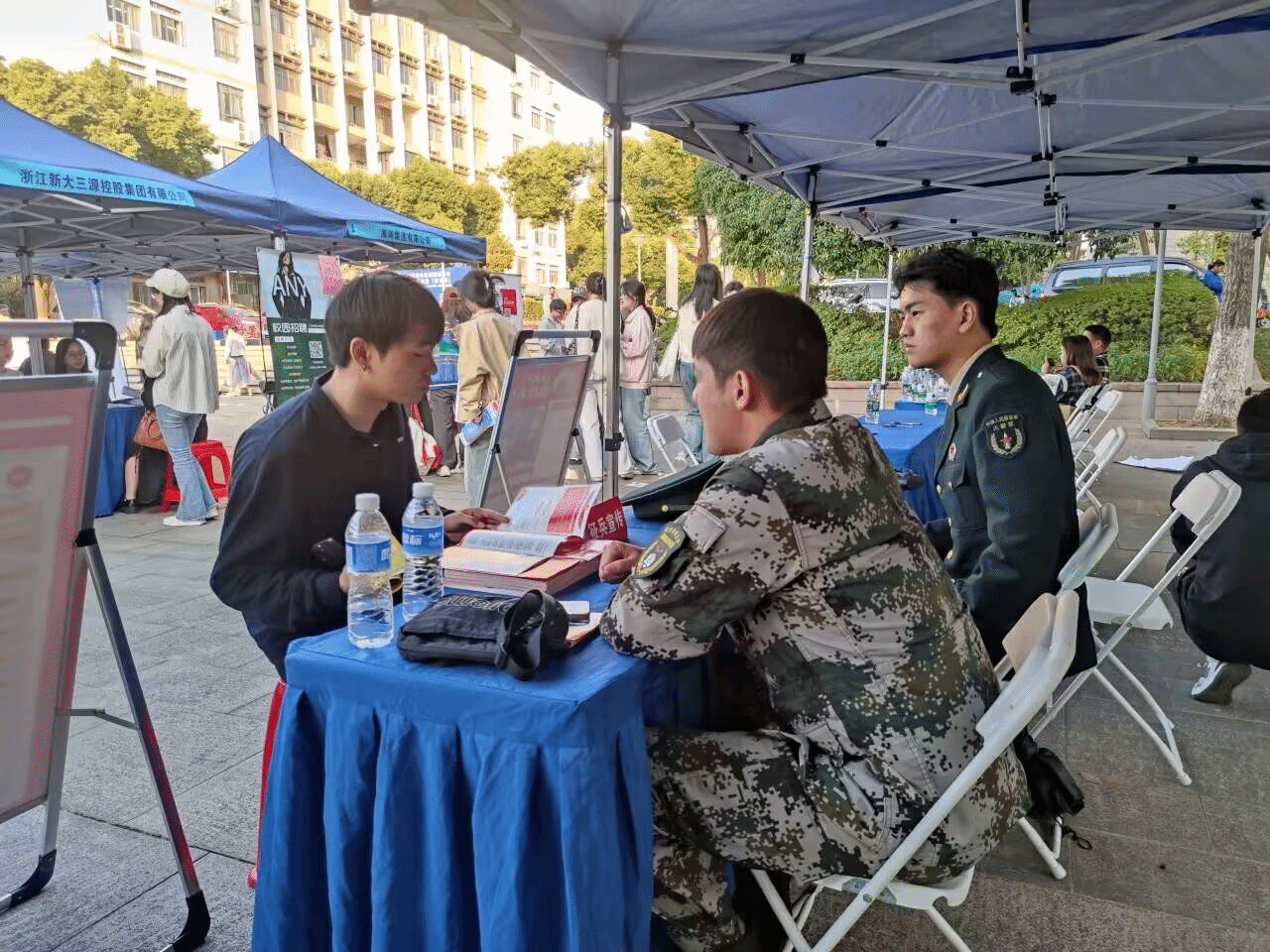 活动现场,宣传帐篷吸引了大量员工驻足咨询。退役军人们详细介绍了应征入伍的流程,包括报名登记、体格检查、政治考核及最终入伍等环节,确保同学们对整个参军过程有清晰的认识。他们还解读了应征入伍的基本条件,如年龄、身体素质和政治背景要求,并强调了老员工参军特别优惠政策,例如学费减免、升学优待、就业加分、家庭优抚等。这些政策为有志于参军的老员工提供了实际而显著的激励措施。