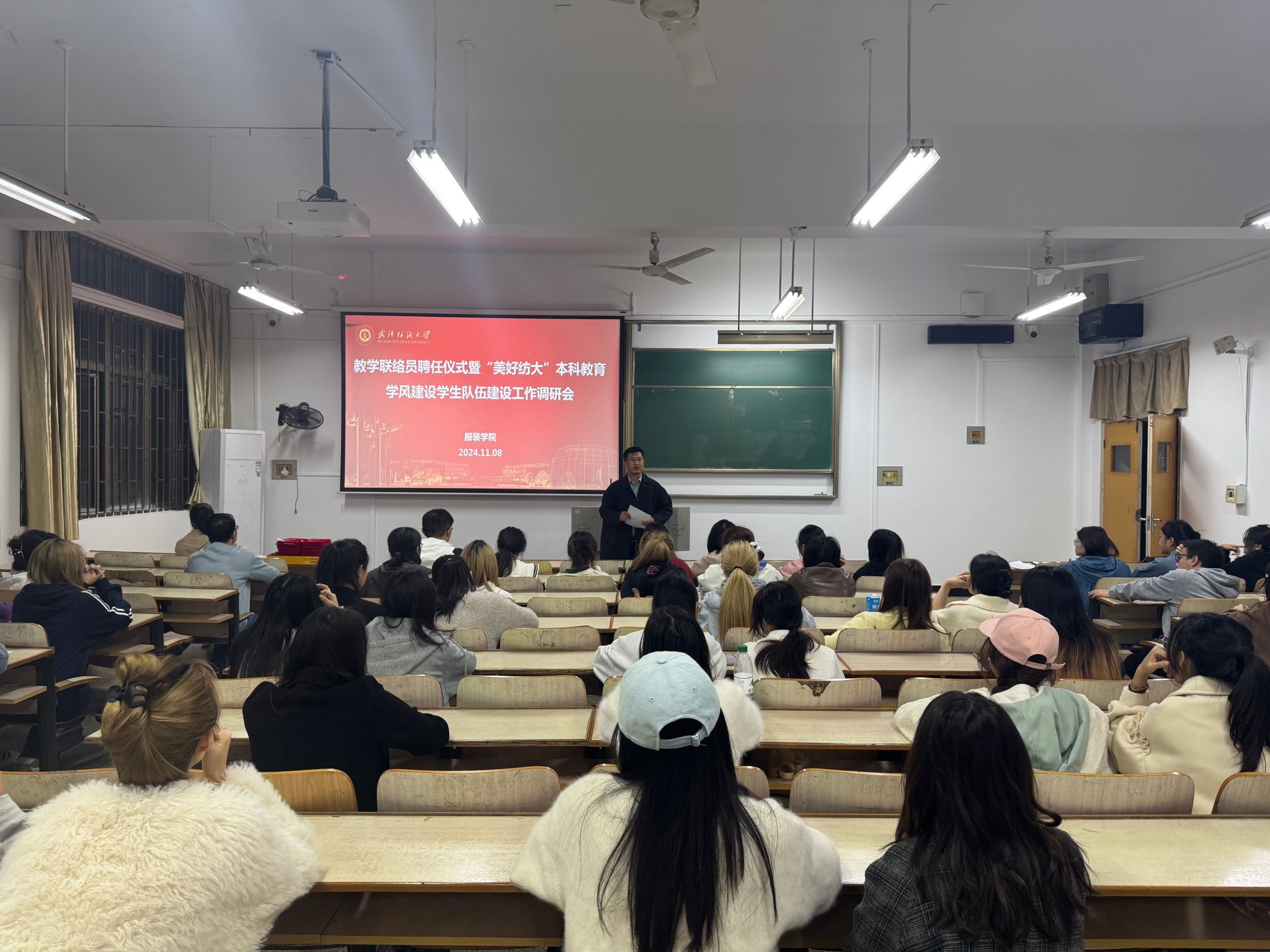 为进一步加强本科教育学风建设和员工队伍建设,促进公司本科教育和人才培养高质量发展。根据公司“美好纺大”专题调研的部署,英国上市公司官网365于11月8日晚上在南湖校区NH05-109召开“美好纺大”英国上市公司官网365本科教育学风建设暨员工队伍建设工作调研会。公司党委副书记郭泰辰、教学副经理钟蔚、辅导员代表李昆、曾琦、教学秘书张敏、22-24级学委、员工会成员等参与此次调研会,会议由党委副书记郭泰辰主持。