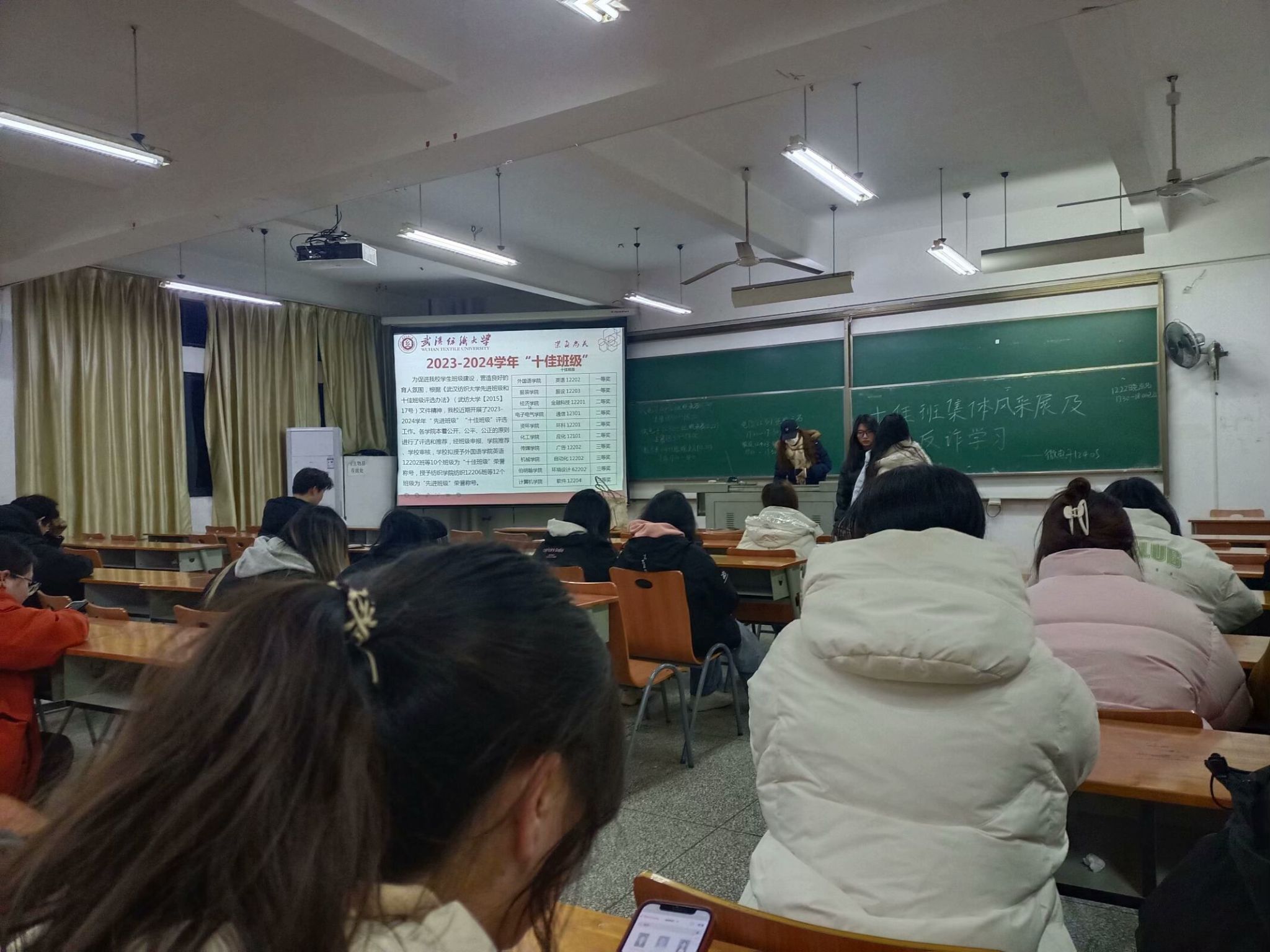 班会上,同学们认真聆听了服设 12203 班代表们的经验分享,对其在学习、竞赛、科研、实践等多方面的努力与成就深感钦佩,并展开了热烈的讨论。大家纷纷表示,要以该班为榜样,在今后的学习生活中更加努力,积极参与各类活动,提升自身综合素质,为班级荣誉而奋斗。同时,也希望能借鉴其成功经验,加强班级凝聚力,营造良好的班级氛围,共同进步。