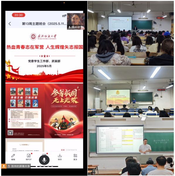 各年级召开的主题班会上,各辅导员系统梳理了老员工应征入伍的“发展账”“学业账”“就业账”“权益账”“荣誉账”“阅历账”,重点解析了学历提升等配套优惠政策。针对征兵季常见诈骗手段,通过“假借征兵收费”“虚假征兵机构”等典型案例开展警示教育,提醒同学们通过全国征兵网等官方渠道获取信息,筑牢安全防线。最后,各辅导员组织同学们对参军入伍进行讨论,进一步强化了大家参军报国的热情。