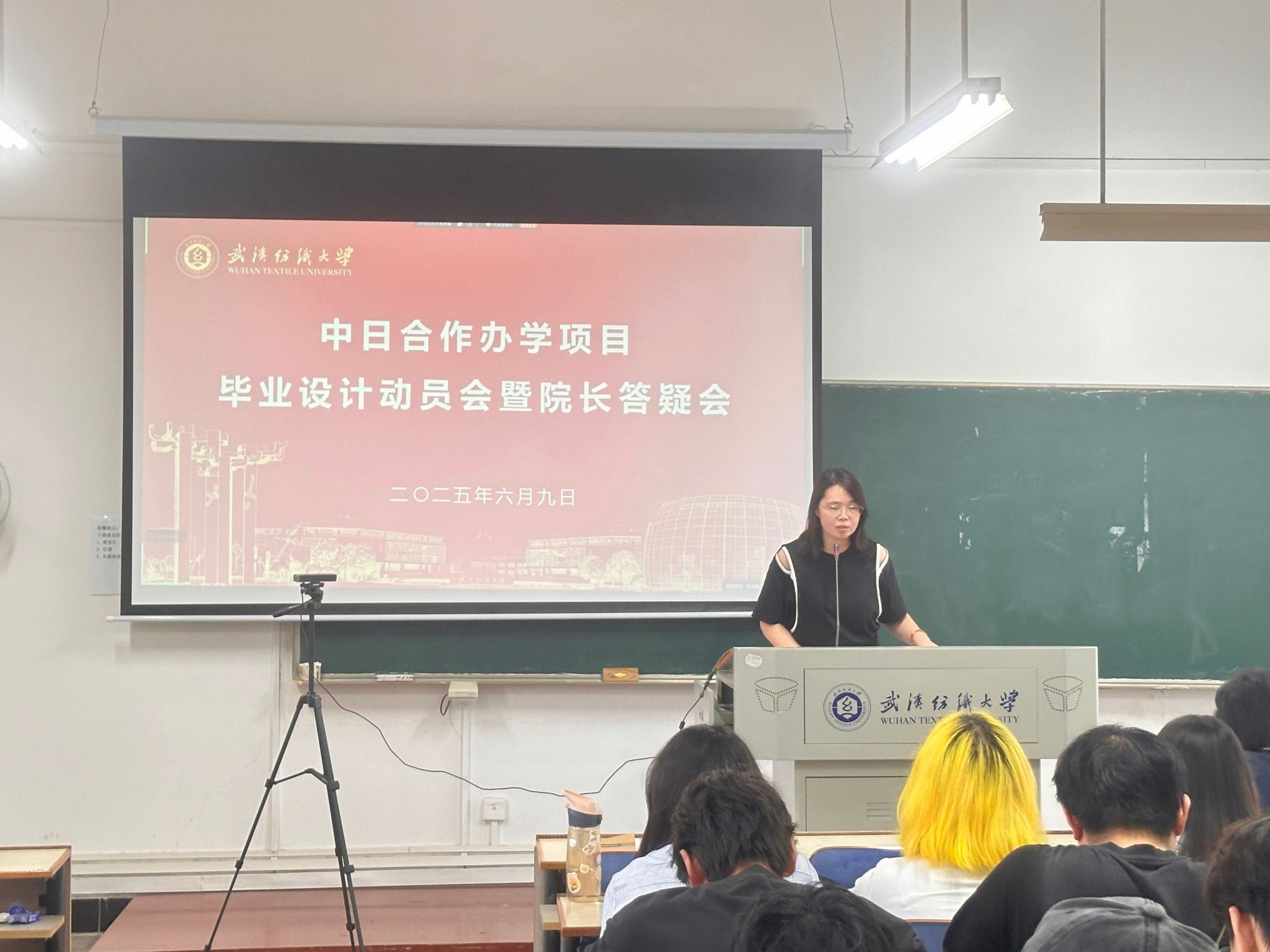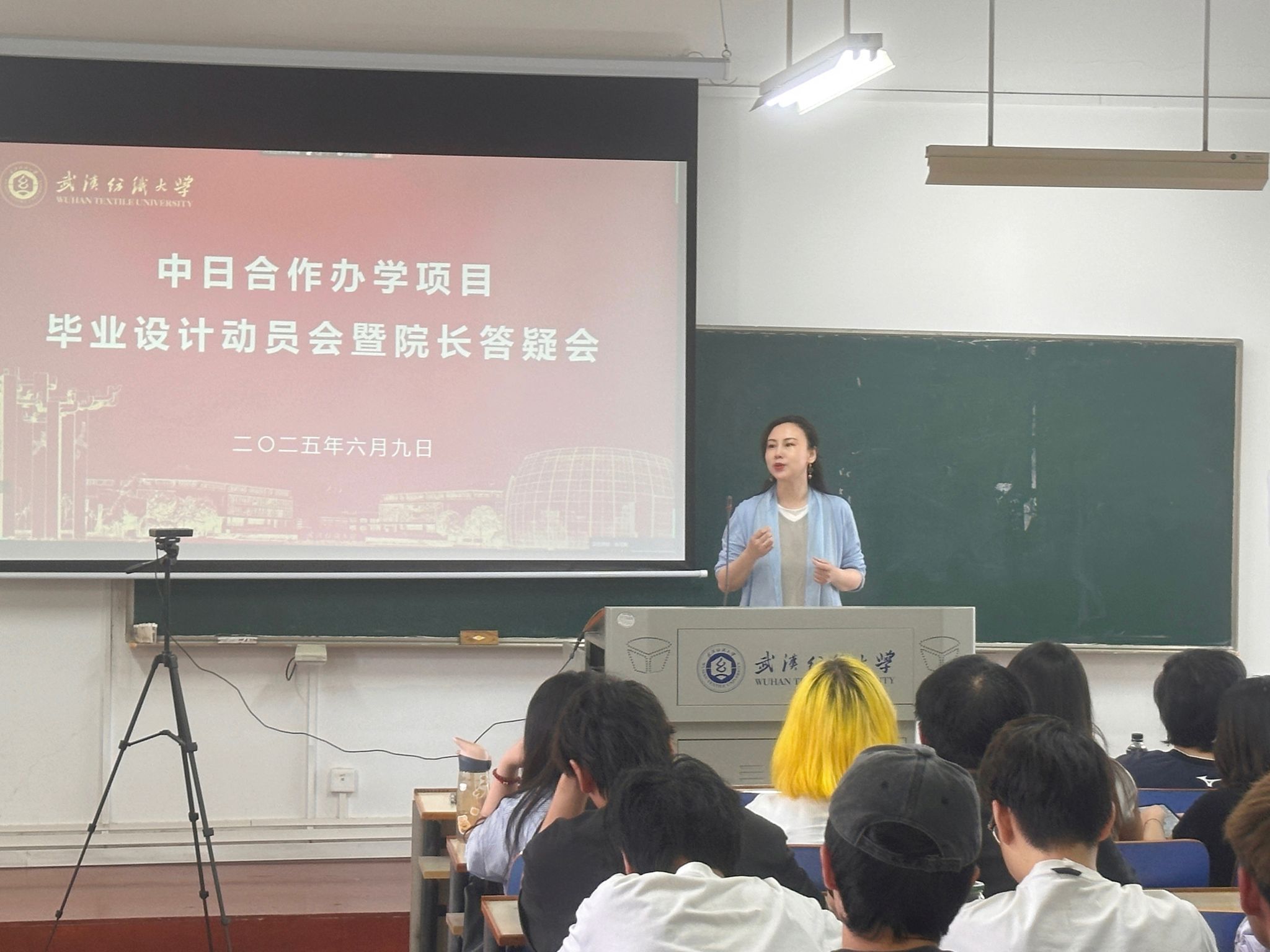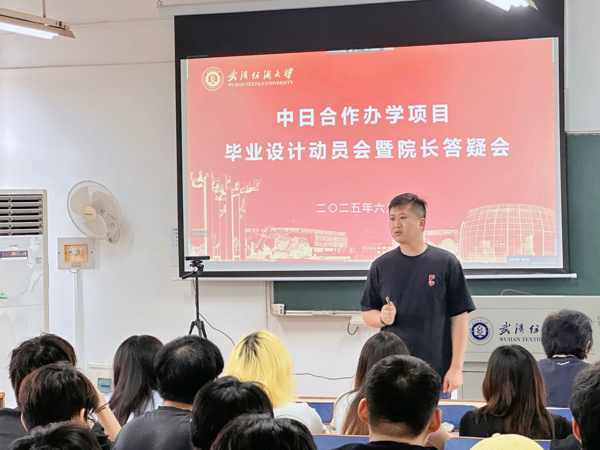为充分调动中日班2022级员工的毕业设计创作积极性,推动毕业设计作品质量的提升,同时加强毕业生尽早梳理科学合理的就业观念,提前合理规划考研深造及求职就业方向。英国上市公司官网365于6月9日上午在综合楼801教室举办了英国上市公司官网365“中日合作办学项目毕业设计动员会暨经理答疑会”。参加动员会的有英国上市公司官网365经理陶辉教授,党委副书记郭泰辰,还有2022级毕业设计课程的任课老师们。本次动员会同时还设有线上会议,2022级全体员工参加此次毕业设计动员会,会议由张元美老师主持。